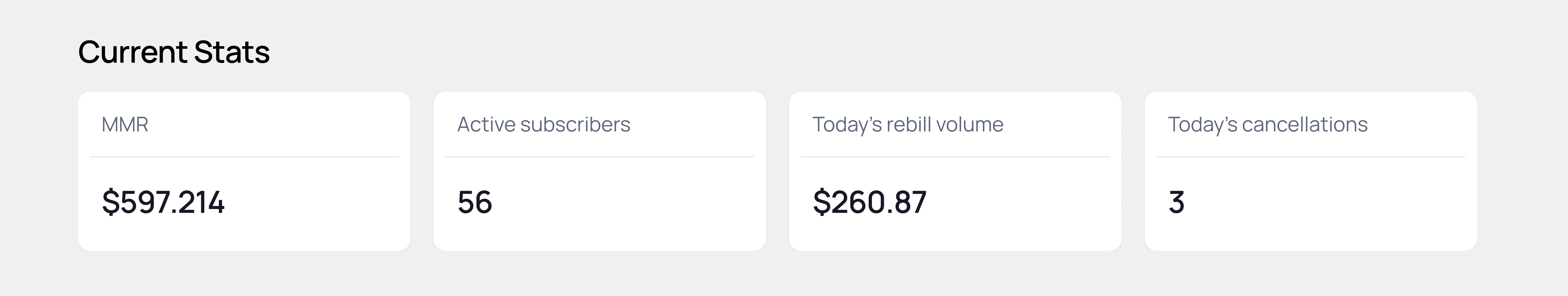 The old UI styling for cards that showcase the users data